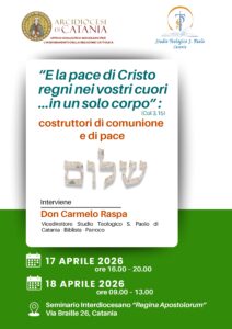 L’Ufficio Scolastico Diocesano propone due giornate di spiritualità sul tema “E la pace di Cristo regni nei vostri cuori”. L’incontro, guidato dal biblista Don Carmelo Raspa, si terrà il 17 aprile (ore 16-20) e il 18 aprile 2026 (ore 9-13) presso il Seminario Interdiocesano di Catania. L’evento approfondirà il ruolo degli educatori come costruttori di […]